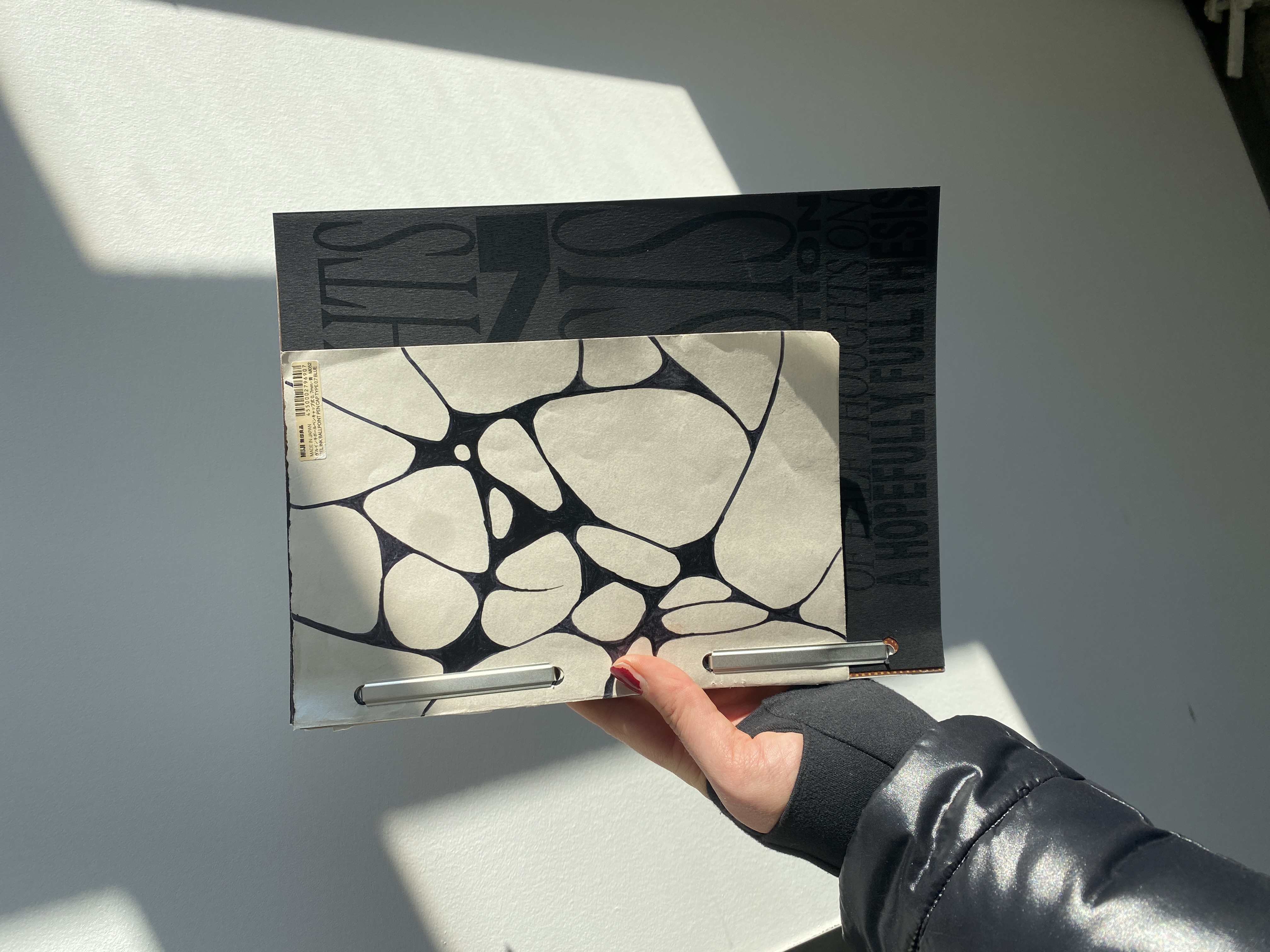So I thought about “home” in the context of this project and it lead me to my home made notebook.The Notebook ended up becoming a pivital design element of the thesis book as all of its pages were bound into it.